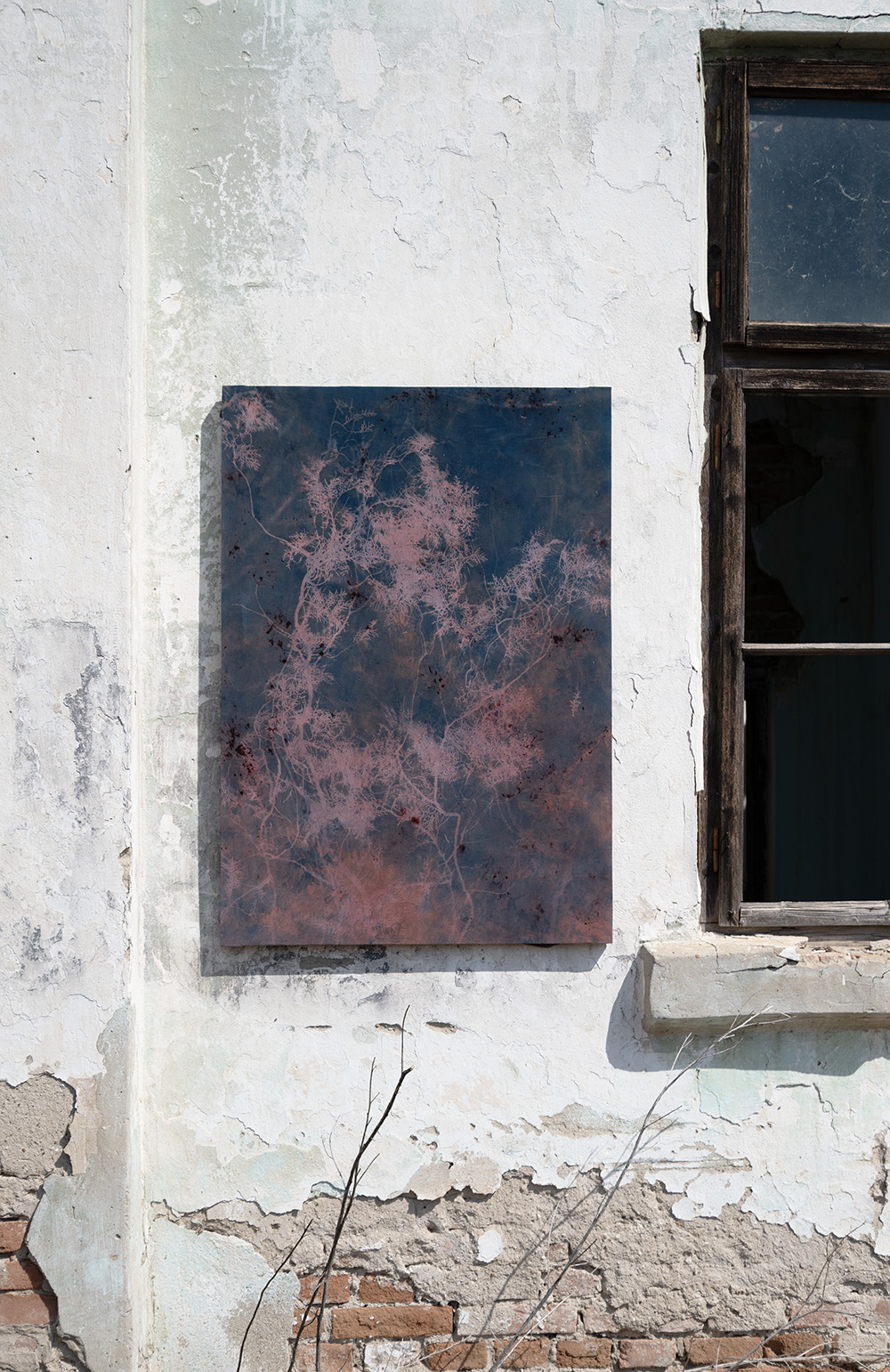 Ceux-ci sont tout à la fois fixés et dilués par les colorations naturelles dans des compositions-portraits qui leur confèrent un statut de membres de la famille, les intègrent à hauteur égale que leurs homologues humains à ce qui n’est pas tant, aux yeux de l’artiste, un herbier qu’un album photo. En découle un rapport de longue durée à ces images, autant par la temporalité propre à sa révélation par photosensibilité sur le support que dans la dimension fossile à peine dévoilée. À l’état de hantise, dans des états différés, les plantes survivent malgré leur disparition annoncée. En retour, leur fulgurance agit sur la manière dont l’architecture peut être elle-même perçue comme une archive transitoire et fragile.
